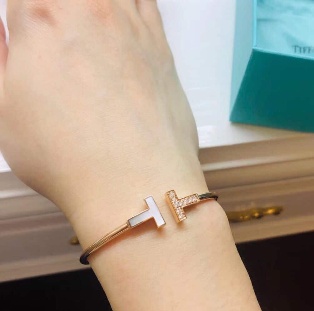 Ce superbe Faux bracelet Tiffany en or rose est un accessoire indispensable pour toute personne soucieuse de la mode. Fabriqué à partir d’or rose de haute qualité, ce bracelet Rigent T1 en or rose double T avec diamants asymétriques et vente en ligne MOP respire l’élégance et la sophistication. Le design complexe comporte un fermoir double T, ajoutant une touche de fantaisie à l’esthétique globale. La pièce maîtresse du bracelet est une superbe incrustation de MOP (Mother of Pearl), entourée de diamants étincelants qui captent magnifiquement la lumière.