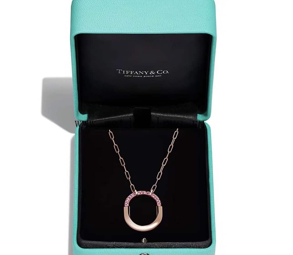 Le design complexe du pendentif témoigne du savoir-faire exceptionnel de Tiffany, chaque détail étant soigneusement étudié pour créer une pièce véritablement unique. La chaîne en or rose est réglable, ce qui permet de porter le pendentif à une longueur confortable, tandis que le fermoir en saphir ajoute une touche de fantaisie et de fantaisie.