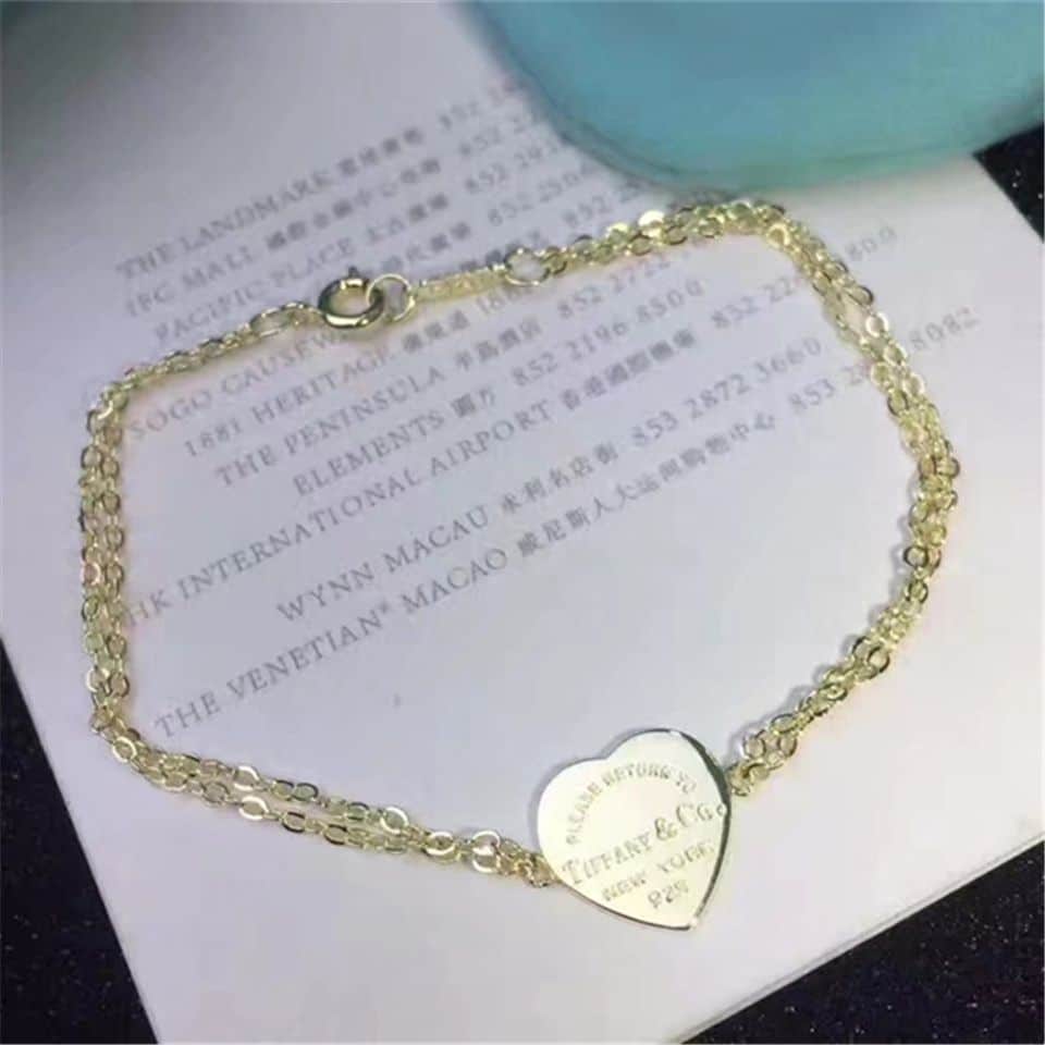 Ce Bracelet Tiffany Heart Tag est un superbe bijou raffiné qui respire l’élégance et la sophistication. Fabriqué à partir d’argent, d’or rose ou d’or jaune de haute qualité, ce bracelet à double chaîne en forme de cœur est parfait pour les occasions spéciales ou pour un usage quotidien. La délicate étiquette en forme de cœur est ornée de détails complexes, ajoutant une touche de fantaisie au design global. La chaîne réglable assure un ajustement confortable pour toutes les tailles de poignet.