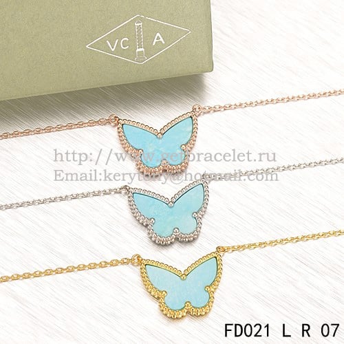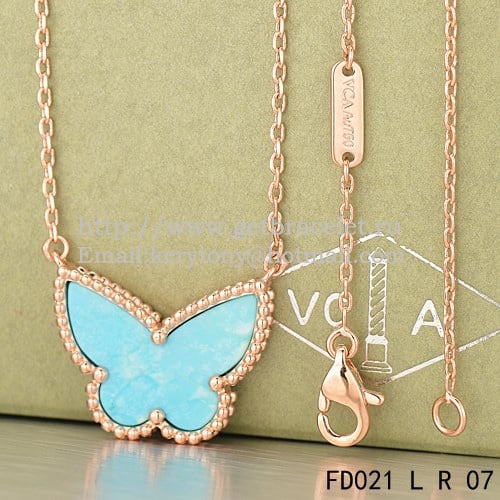 Van Cleef Arpels Pendentif Papillon Lucky Alhambra Or Rose Avec Nacre Turquoise