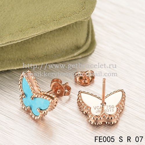 Les Réplique boucles d’oreilles Van Cleef Turquoise sont un superbe ajout à toute collection de bijoux. Fabriquées en or rose, ces boucles d’oreilles présentent un délicat motif papillon orné de nacre turquoise et de détails complexes. Les ailes du papillon ont la forme d’une fleur, ajoutant une touche d’élégance supplémentaire au design global. Les boucles d’oreilles sont suspendues à une chaîne délicate, permettant un ajustement confortable et sécurisé.