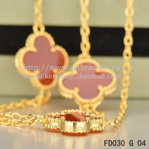 Cette exquise Réplique collier Van Cleef Alhambra est un chef-d’œuvre artisanal, comportant 10 motifs en or jaune, ornés de cornaline et de nacre. Le design complexe rappelle le palais de l’Alhambra en Espagne, avec ses arches ornées et son filigrane délicat. Ce collier est un superbe exemple du savoir-faire de Van Cleef&Arpels dans la combinaison de matériaux contrastés pour créer une pièce véritablement unique.