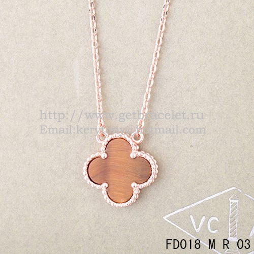 Cet exquis Faux pendentif Van Cleef Alhambra est un chef-d’œuvre artisanal, présentant une superbe combinaison d’or rose, d’œil de tigre et de nacre. Le pendentif mesure 15 mm de diamètre, ce qui en fait un accessoire parfait pour toute occasion. Les détails complexes du design Alhambra sont savamment rendus en or rose, avec un éclat subtil qui capte la lumière. L’œil de tigre ajoute une touche de chaleur et de profondeur, tandis que la nacre apporte un contraste doux et crémeux. Cette pièce unique fera certainement tourner les têtes et fera une déclaration. Associez-la à la Bague verte imitation Hermes Comic pour un look à la fois élégant et audacieux.